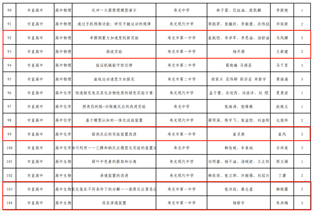 另外,在潍坊市中小学实验教学优质课评选活动中,寇玉坤获高中信息技术组二等奖,任倩倩获高中化学组三等奖,宋迪获高中生物组三等奖。