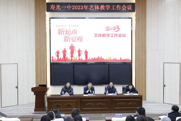 风劲帆满图新志,乘势而上启新程。2月9日,寿光市第一中学召开新学年艺体教学工作会议,对新学期艺体教学工作进行周密部署,进一步明确新学期艺体工作要求,全力提升艺体教学质量。党委书记、校长肖学军,副校长潘兆中、张玉富、何祥坤、桑林海及艺体部全体教师参加会议。