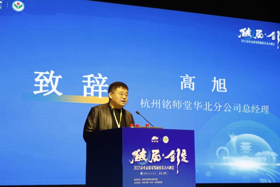 2023中国教科院教育战略与宏观政策研究所所长吴霓,潍坊市教科院领导,寿光市教体局党组书记、局长张国峰,寿光市教体局党组成员、教科研中心副主任毕德亮,教科研中心副主任常相利,杭州铭师堂华北分公司总经理高旭,杭州铭师堂信息化建设发展中心主任王健,寿光一中党委书记、校长肖学军,副校长潘兆中、张玉富、徐丽及来自全国各地市的近500位教育主管部门领导、高中管理者与会。