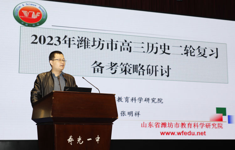 为深入分析研讨“新课程新教材新高考”实施背景下,历史学科的备考方向与育人方式,3月14日—15日,2023年潍坊市高三历史二轮复习研讨会在寿光一中召开。潍坊市教科院、各县市区教研室历史教研员及全市历史学科教师代表,我校全体历史教师与会。研讨会由潍坊市教科院张明祥老师主持。