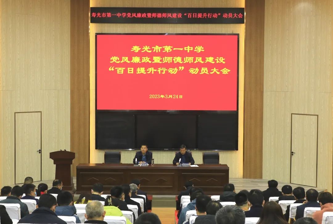 为切实解决干部教师队伍中存在的思想纪律作风等突出问题,进一步增强全体教职员工遵纪守法意识,大兴爱岗敬业、扎实务实之风,3月24日晚,寿光一中召开党风廉政暨师德师风建设“百日提升行动”动员大会,学校领导班子成员、中层干部参加会议,党委书记、校长肖学军作动员发言,党委副书记、纪委书记张国祥主持会议。