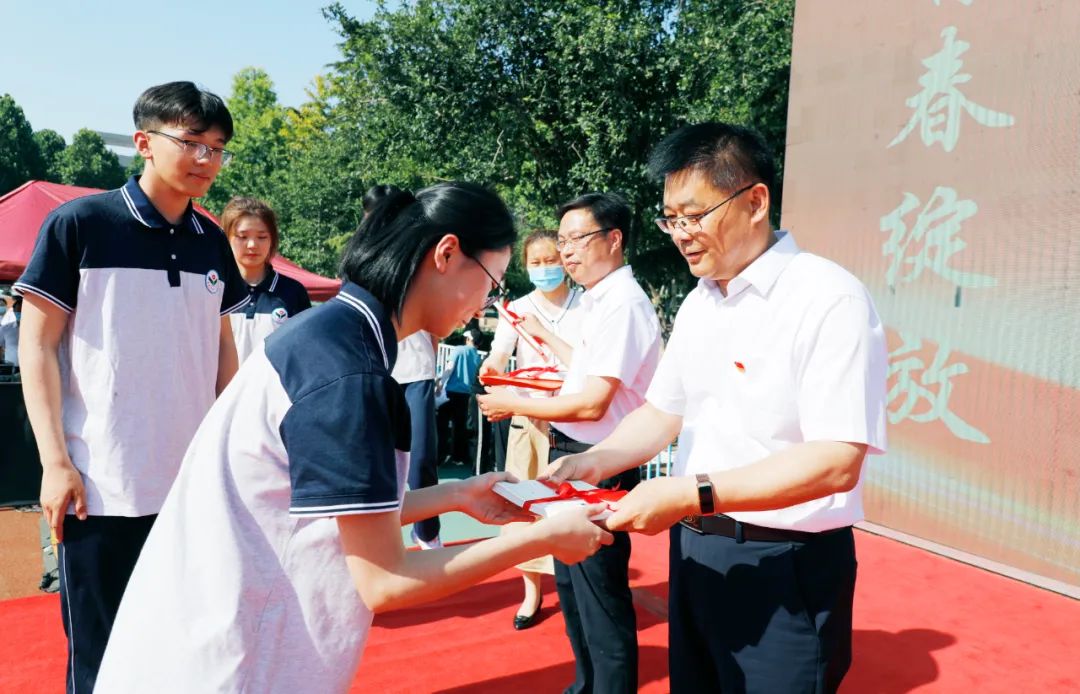 人生就是从一场场毕业仪式中,为自己的青春和梦想获取沉甸甸、金灿灿的毕业证书。学校党委书记、校长肖学军,党委委员、年级校长桑林海为学生颁发毕业证书。“毕业”是一道成长的门槛,此时此刻,有志青年将执此证书,再踏新征程,奔向更好的远方。