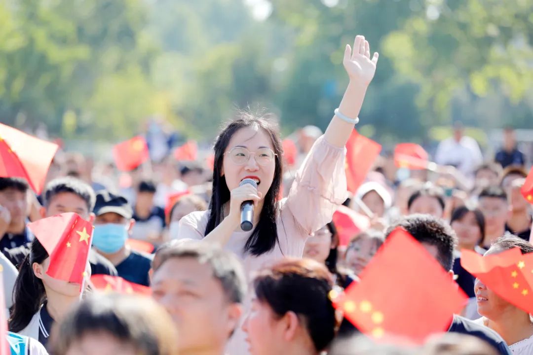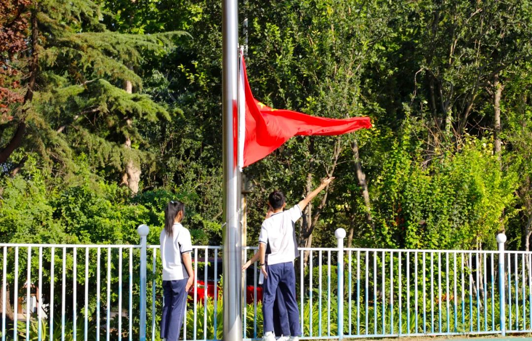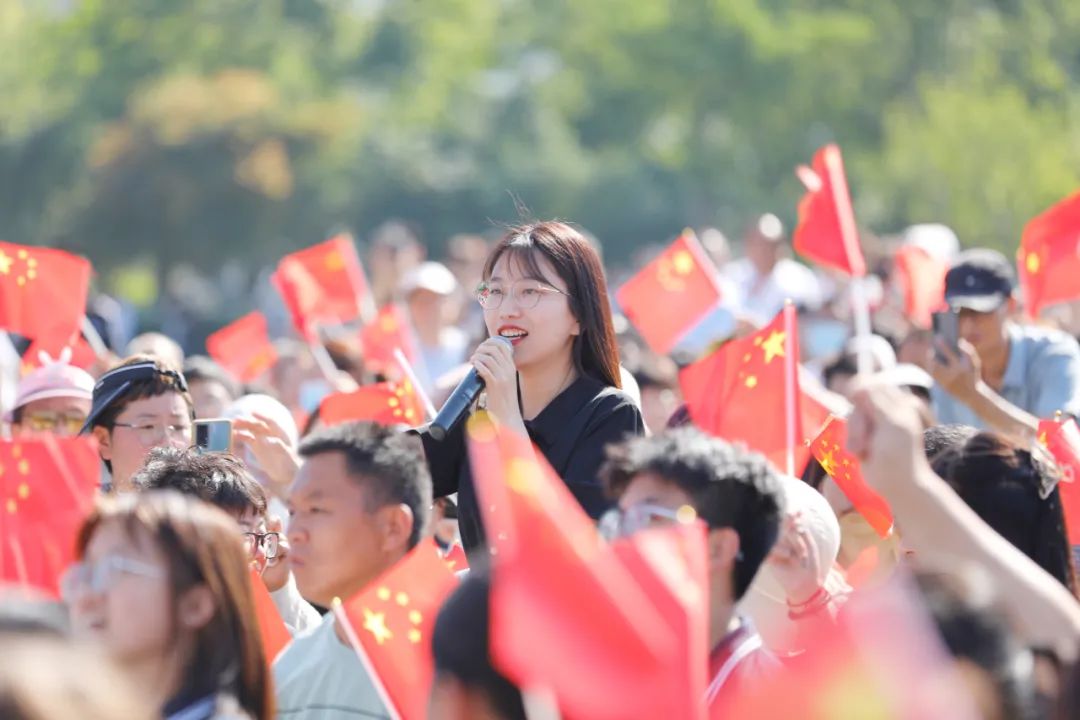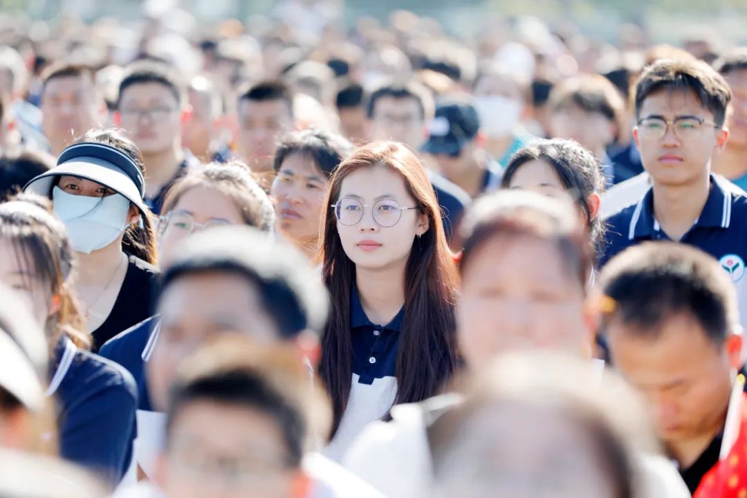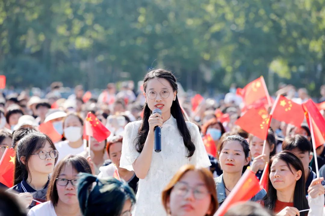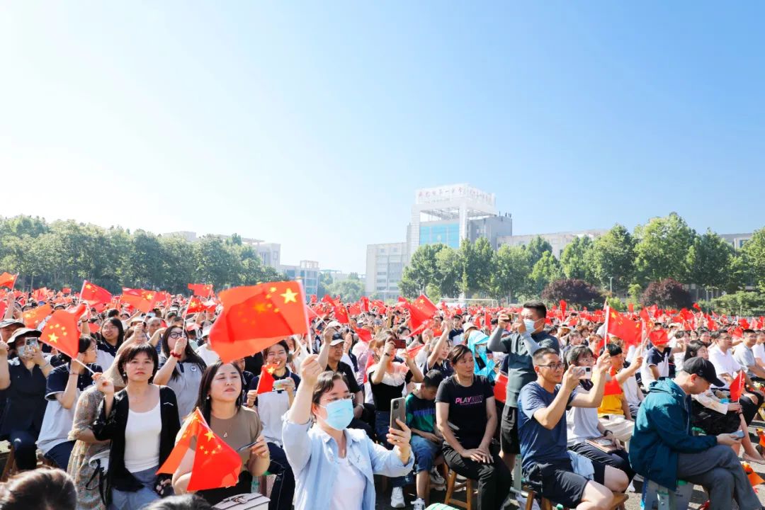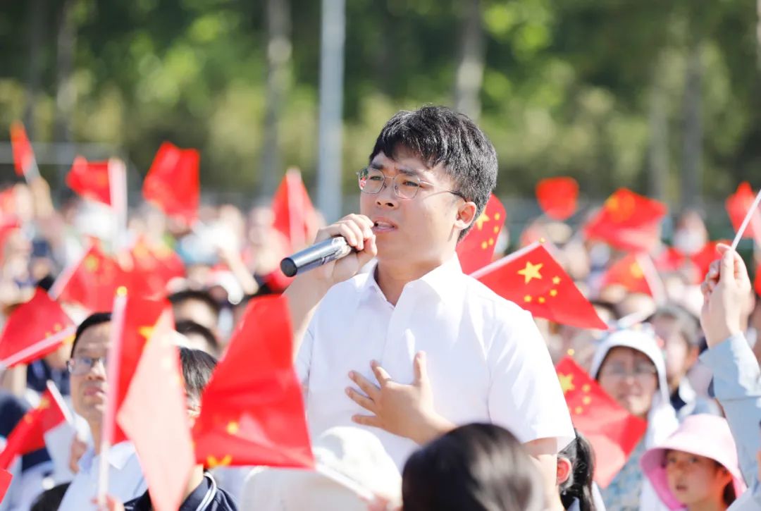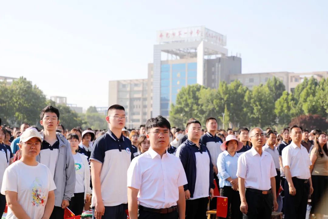 伴随着庄严的旋律,全体师生目视国旗高唱国歌,毕业典礼正式拉开序幕。此刻,全体师生凝望着高高飘扬的五星红旗,立下“请党放心 强国有我”的誓言。