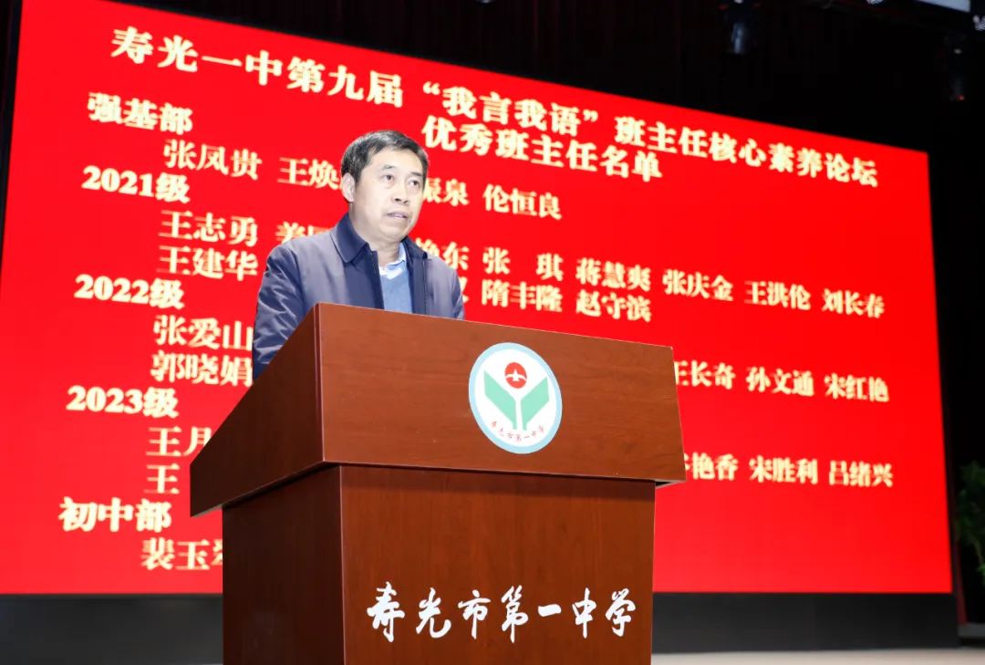 班主任是学校工作的主力军,是学校与班级、学校与家长之间关系的纽带和桥梁。为激发班主任工作热情,提升班主任教育艺术,促进班主任专业发展,12月13日,寿光一中第九届“我言我语”班主任核心素养论坛暨优秀班主任表扬大会在学校多功能报告厅举行。学校领导班子全体成员、中层干部、全体班主任及部分班主任家属齐聚一堂,以“尊重班主任 感谢班主任 发展班主任”为主题,共同营造“人人争做班主任、争做优秀班主任”的良好氛围。学校党委副书记、纪委书记张国祥主持。