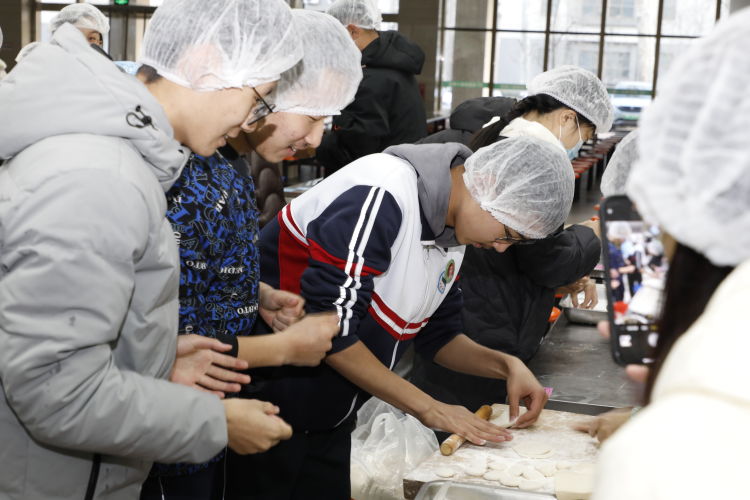 食堂的师傅早早就准备好了包饺子的材料和用具。来到餐厅的学校领导与师生们捋起衣袖,此刻,大家都变成了“包饺子能手”,每个人都充分展示自己的技术:揉面剂、擀饺皮、放肉馅、捏造型,动作完整连贯。不一会儿,一盘盘紧实饱满的饺子整齐地摆在了盘子里。温暖与快乐充溢在每个人的心里,也包进了每一个玲珑可爱的饺子中。