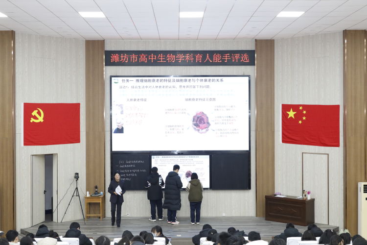 为进一步深化教育教学改革,全面提高教师队伍基本素质,12月25日——27日,潍坊市高中生物学科育人能手评选在寿光一中举行,潍坊市教育科学研究院、寿光市教科研中心生物学科教研员,潍坊市各县市区高中学校参评教师、评委教师参加活动。