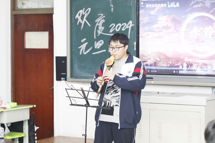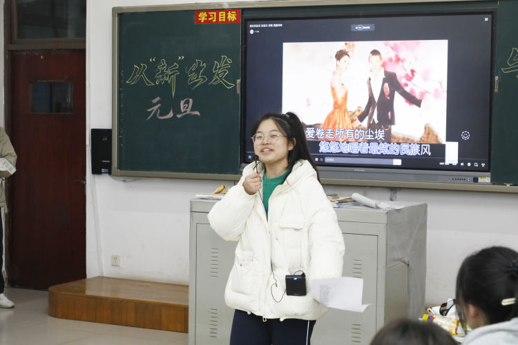 晚会中,各班师生共聚一堂,同享师生乐。同学们深情的歌曲、轻盈的舞蹈、动情的器乐演奏……各种才艺展示纷纷亮相,尽情地表达着对新年的美好祝愿,师生们热烈的掌声和阵阵喝彩点缀了冬季的一中校园,使整个学校充满了欢乐、祥和与温馨。联欢活动是庆祝新年,更是学生素养展示的舞台。师生们利用课间做了充分的准备,每个教室进行了巧妙装扮,处处洋溢着喜庆、活泼的气氛;整场晚会都进行了细致的设计,从级部主题,到节目选排,从节目形式到服装道具等,每一样流程都由学生自主策划,每一处细节都最大限度展示班级文化、展示学生才艺素养;每一位老师都特意准备了节目,让整个班级联欢会高潮迭起,学生们热情高涨,欢乐的笑声此起彼伏。