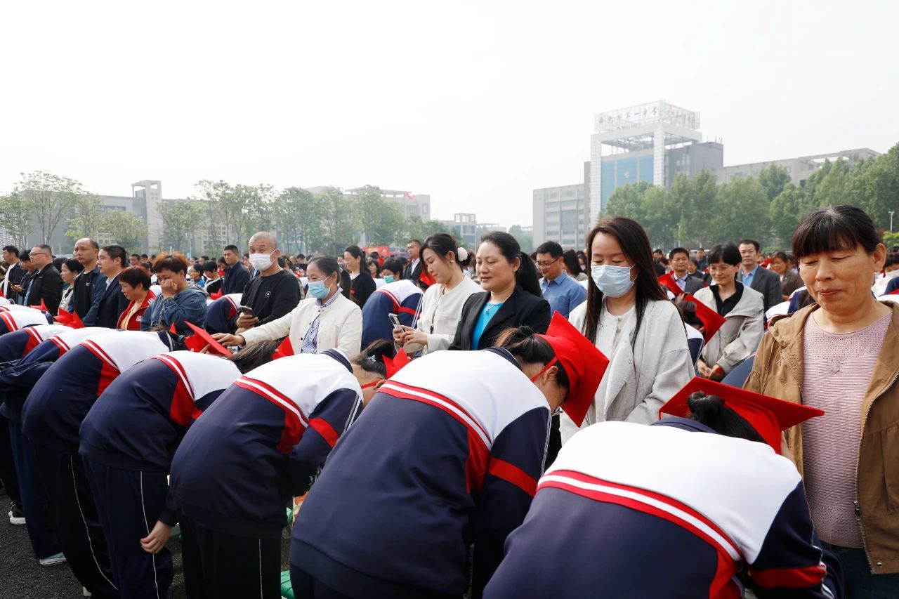 十八而骊,重任在肩,冠之以礼,踏浪乘风。在“行冠礼”仪式上,父母亲自为孩子冠戴成人帽,为青春加冕,为新岁启航。2022级全体学生深深向父母三鞠躬,感谢不求回报的养育之恩,感激背后的坚强支撑,更向父母许下知恩于心、感恩于行、明礼明责的郑重承诺。