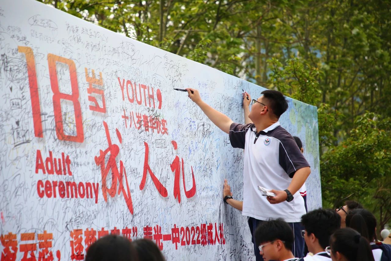 成人礼,在家长、学校、社会共同铸就的仪式中责任交接。同学们纷纷在学校暖心设置的“十八岁许愿墙签名、许愿、合影,留下宝贵的青春印记。