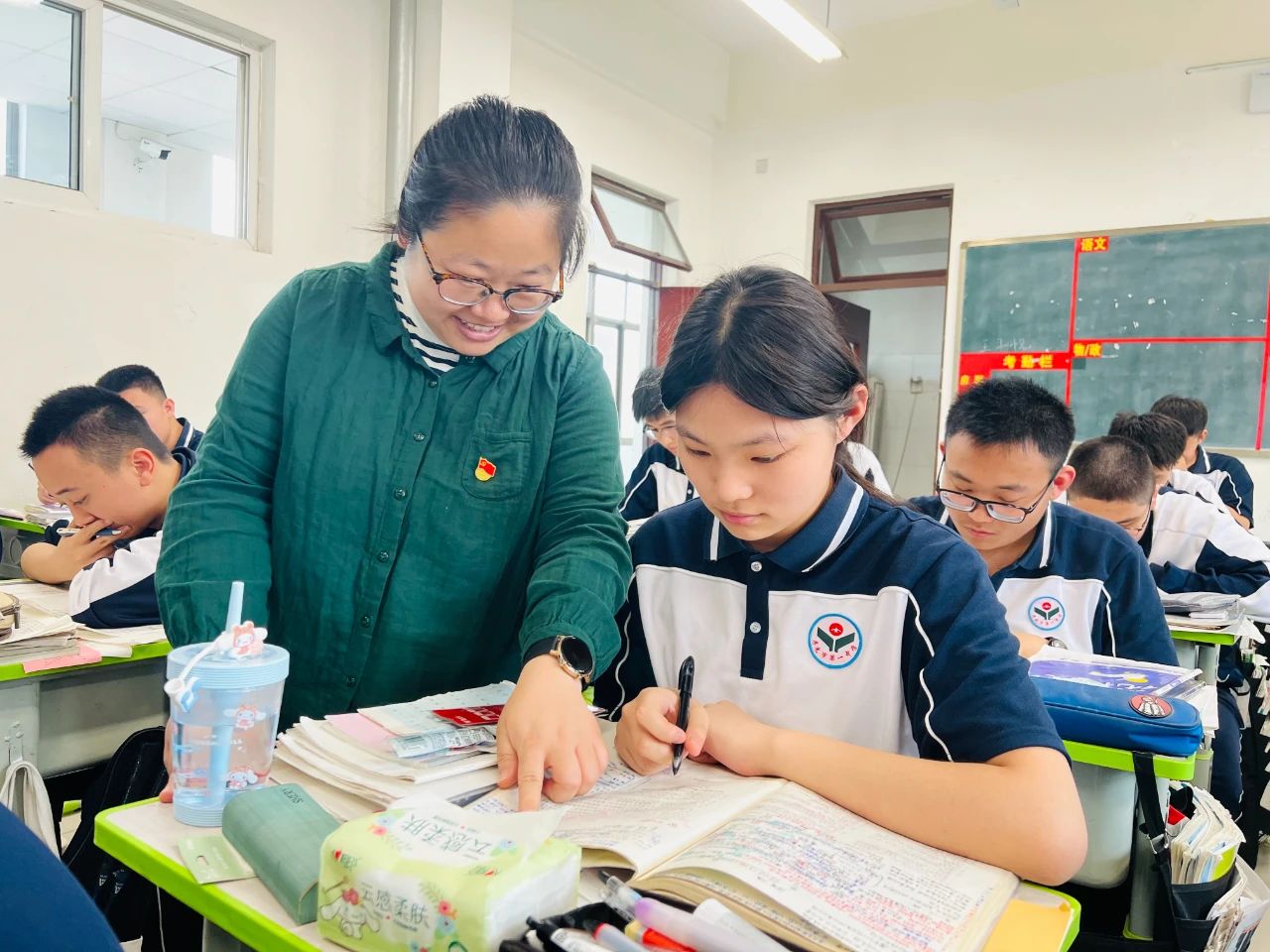 作为一名语文教师,江老师始终认为语文这门学科最有情怀、最有温度,特别是面对新高考的改革,老师更需要一种“大语文”教育思想,把课堂还给学生,把他们还原成一个个有感受力、有生命力的个体,而不是一味靠刷题去感知语文的存在。这些理念的成熟,也得益于邵红立、张玉真、马欣、谷艳香等前辈老师的经验加码。尤其是同一办公室的谷艳香主任,在教学和管理两方面双管齐下,让江娜在实践中变输入为输出。这些有形或无形的帮助,潜移默化中影响着她,让她在承担备课组组长这一职务时更加游刃有余。