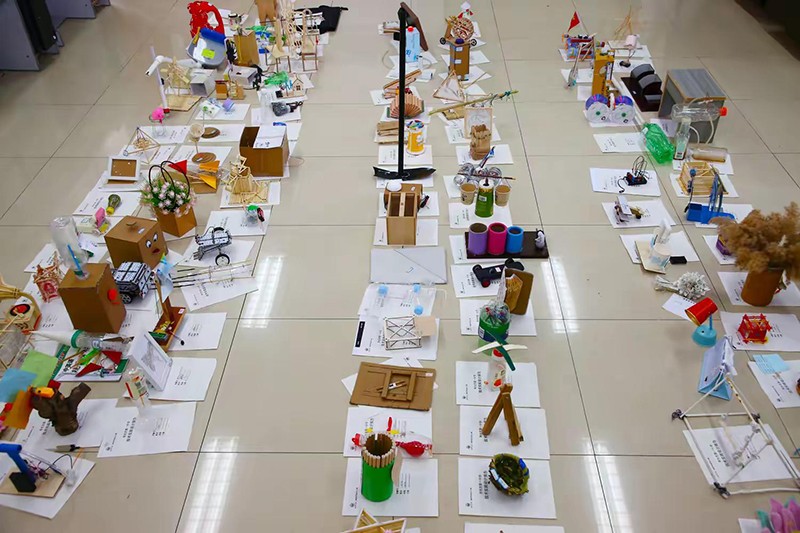 本次科技劳动节展评活动设“未来校园改造师”项目化设计作品展评、劳动工具创新设计作品展评、生活实验设计展评3项活动。参赛学生运用各种材料精心设计与制作立体模型,并附有详细的设计方案,既注重科学性,同时也注重了环保与美观性。有的学生利用齿轮装置和感应装置,制作成避障运输机器人或者电动游乐设施;有的学生用物理学原理,将纸板或木板搭建起建筑物模型或舰艇模型;有的同学则变废为宝,将废弃的塑料瓶、木棍、纸巾等制作成精美的工艺品…… 一个个科创手工作品,活灵活现,各具特色,点亮了一中学子心中的创新火种。