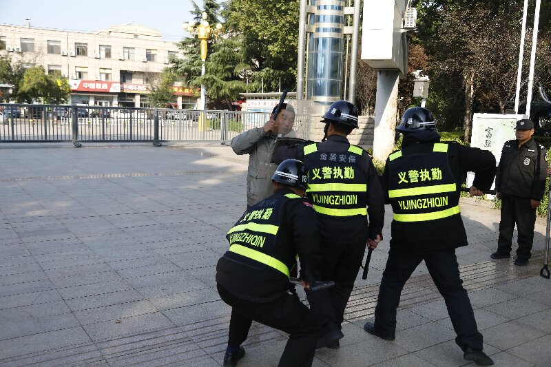 为确保安保人员能熟练、正确地操作安保设施设备。演练前,安全保卫处主任徐金光就演练活动进行了安排和分工,演示了正确的制止歹徒的动作、方法和实战技能,并对保安进行了警械使用培训。